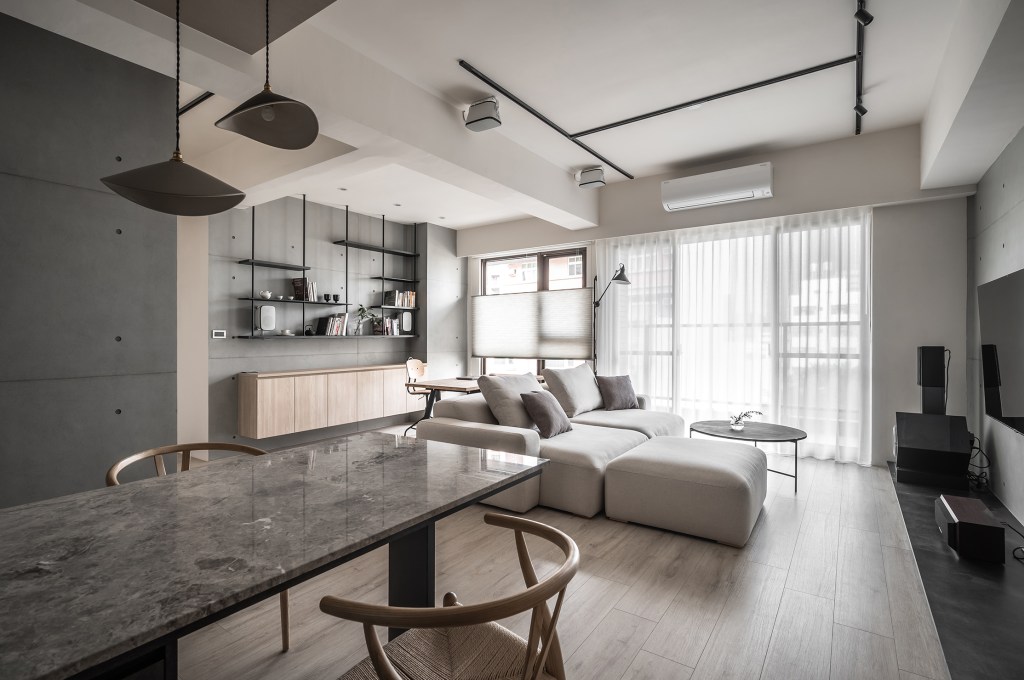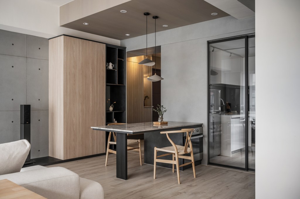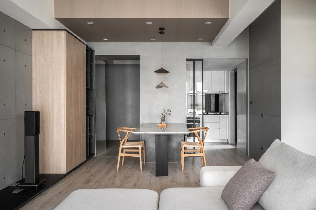 年輕夫婦已是第二次的合作,新居,設計師整合二人需求,打造出美觀耐看的居宅視野,並挹注合宜收納、順暢動線,完美分配每個場域範圍,不浪費絲毫空間!