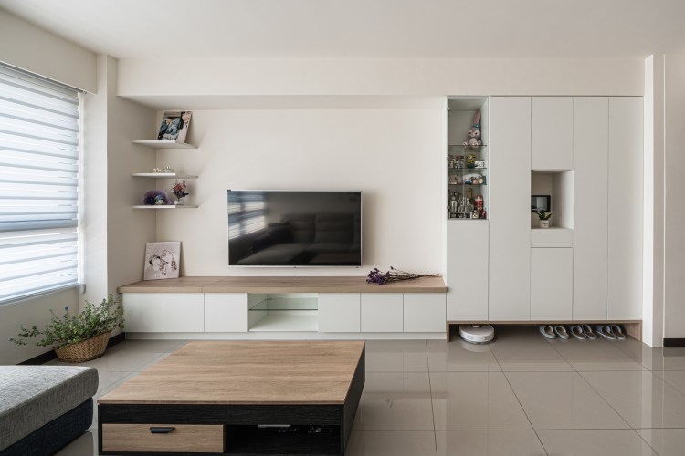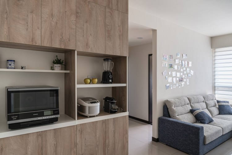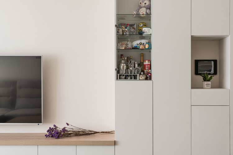 其他功能上,玄關區涵蓋所有外出回家的功能,安全帽公事包,襪子…等等, 餐廳櫃則滿足所有電器的使用。