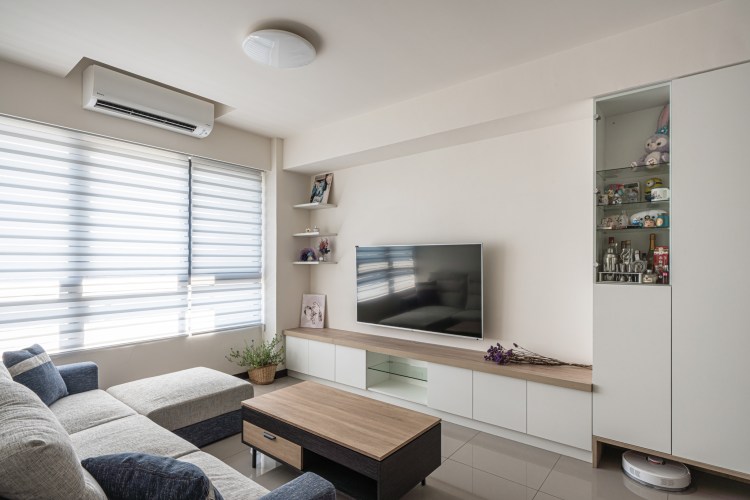清爽的日式清新宅,是男主人和女主人對新家的期待,入門一進開闊的大面採光,迎接男女主人到家,簡潔的純白色門片融入不同深淺的淡色木紋帶出風格,灰藍色沙發成為客廳的亮點,不只是客廳的主角,也是放鬆的角落。