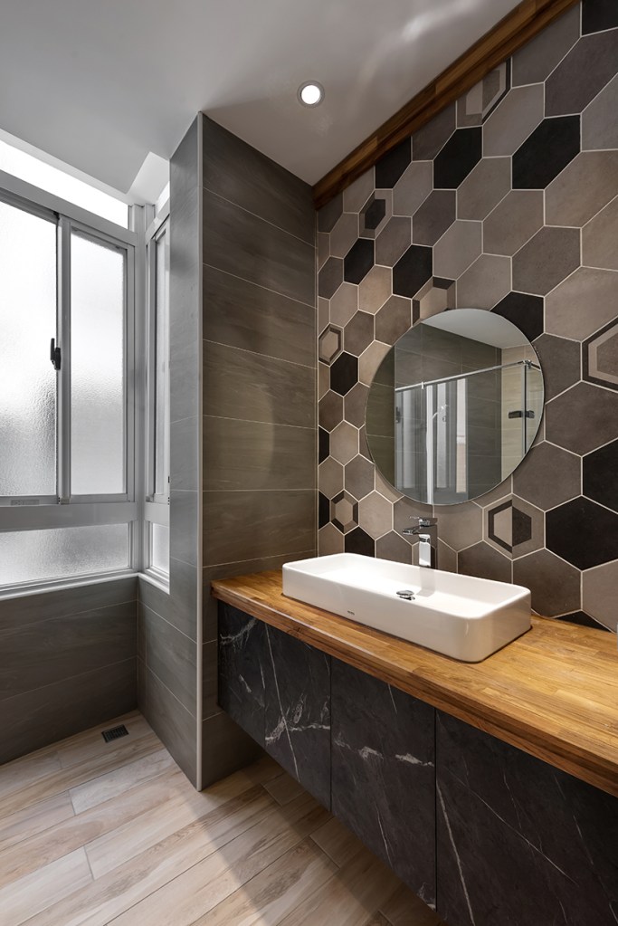 本案為堤朵那設計的80坪現代風老屋設計作品,格局為長型屋六房以上的居住空間。居住成員包含4位大人、3位小孩。全室建材的搭配,應用柚木實木、進口磚、珪藻土、特殊漆、耐磨地板,展現溫馨的居家氛圍。
