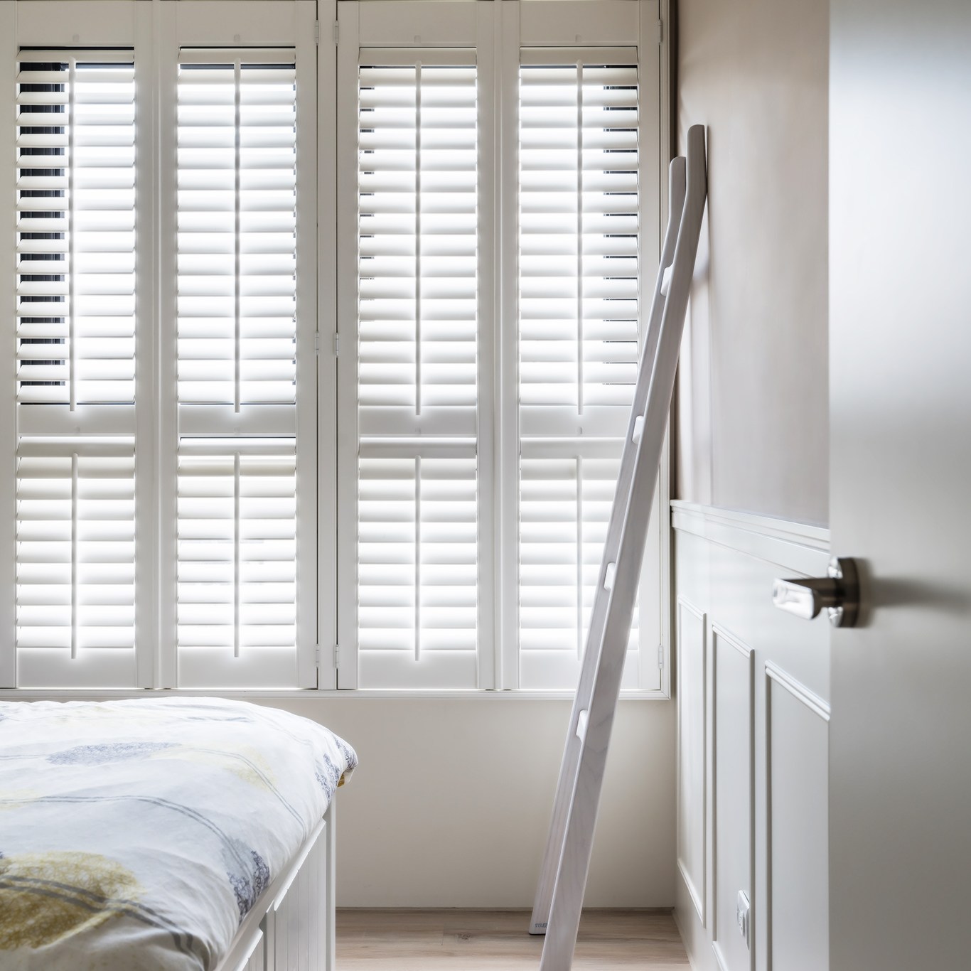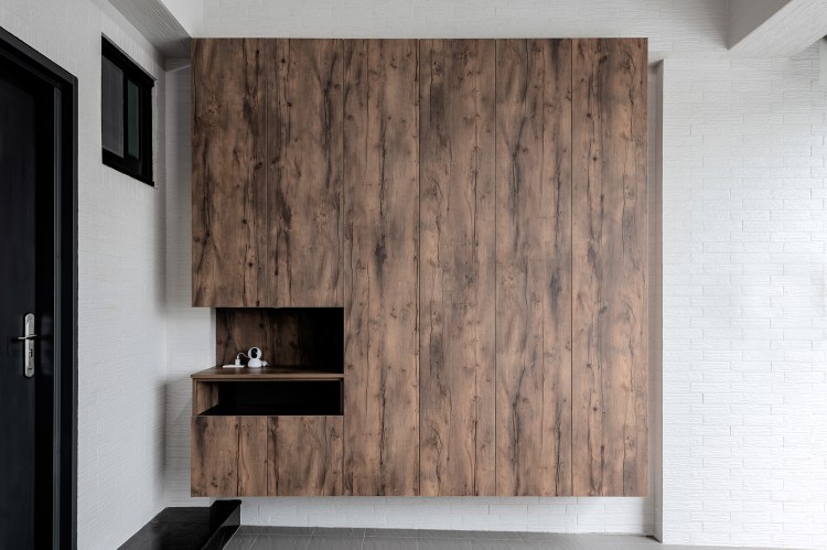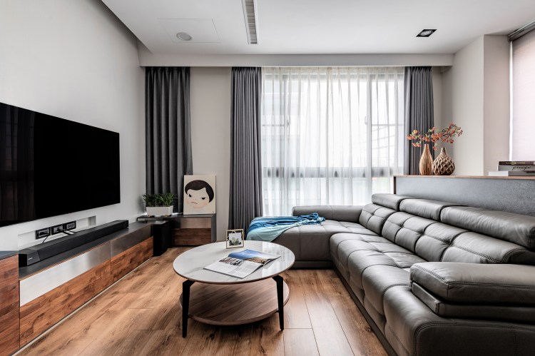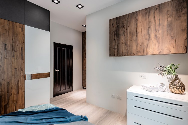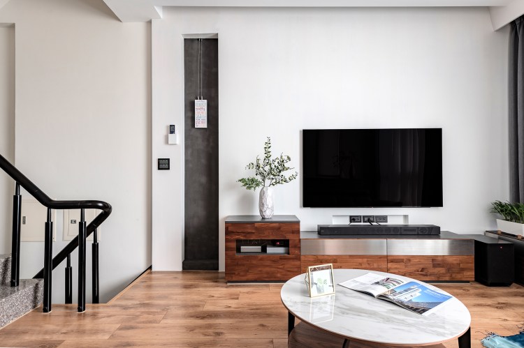 50 坪三層樓透天別墅住著一家三口,身為工程師的男屋主喜歡現代簡約的對比視覺,女屋主則偏好純白的空間、在意機能細節,而設計師考量兩者需求,在家具、櫃體和牆面的選擇上,以黑白色系的對比搭配實木的溫暖感,同時在白色中藉由不同紋理的變化,找到兩人的最大公約數。