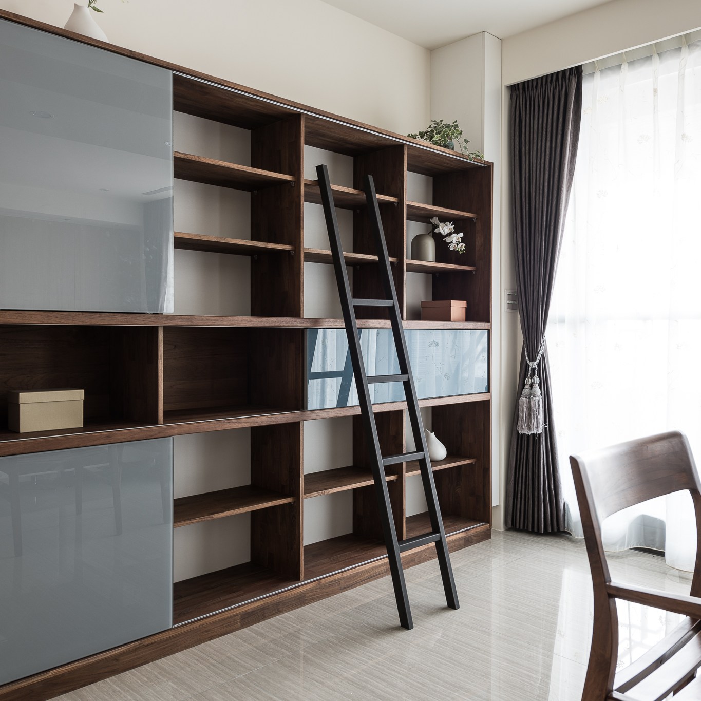 收納設計是否充足,是屋主裝潢裝修時常提出的生活需求。此案從客廳、餐廳到臥室,皆有大量收納櫃體,讓全家的生活物品都能各自歸位,不讓居家雜物四處散落,像是客廳沙發牆上的吊櫃、餐廳後方櫃體與送餐台皆暗藏大量收納空間。